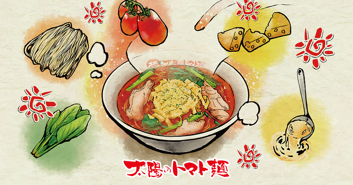 太陽のトマト麺、公式サイトです。今までにないイタリアンとラーメンの融合。単に目新しいだけでなく、その美味しさと斬新な発想で注目度抜群です。圧倒的な差別化を図った新ジャンルのトマトラーメンです!