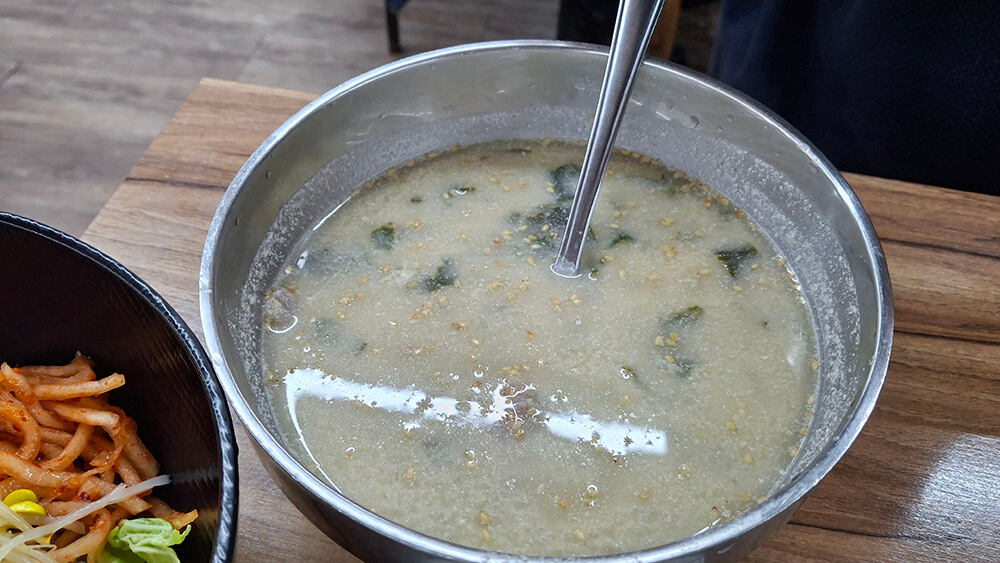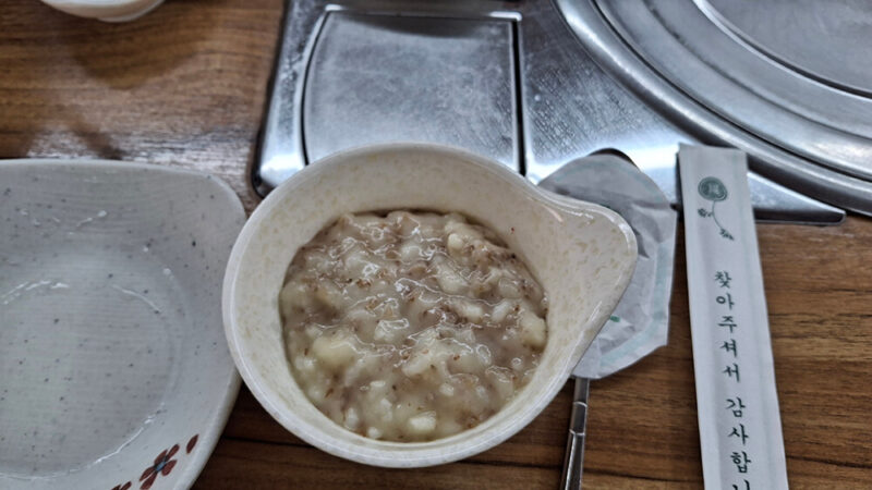 메밀죽: 입맛을 부드럽게 열어주는 메뉴입니다. 고소하고 따뜻해서 식전에 먹기 좋았습니다.