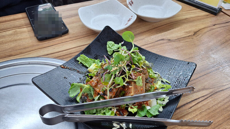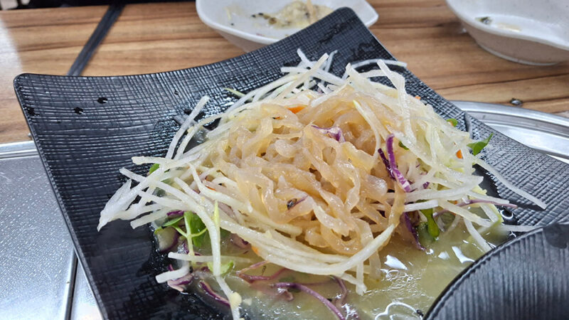 묵무침: 양념이 과하지 않고, 도톰한 묵에 채소와 함께 상큼하게 무쳐져 있었습니다.