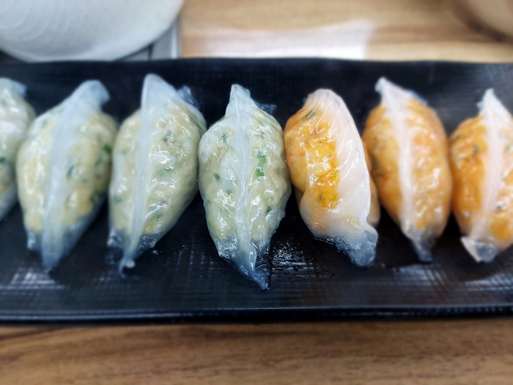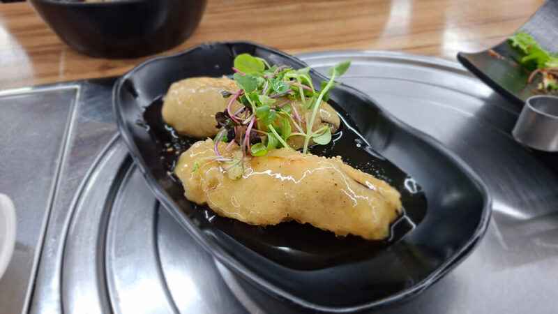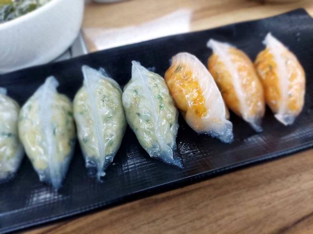 우리는 이렇게 배가 부를 지 모르고 감자만두까지 추가했어요. 중간에 괜히 시켰나 후회했지만, 감자피로 만든 만두피가 얇고 투명한 느낌이 독특했고, 겉은 쫀득하면서 속은 촉촉하게 잘 채워져 있었습니다. 고기나 김치 같은 강한 맛은 없고, 채소 위주의 속이라 가볍게 먹기 좋았습니다. 그래서 잘 시켰다 했어요.